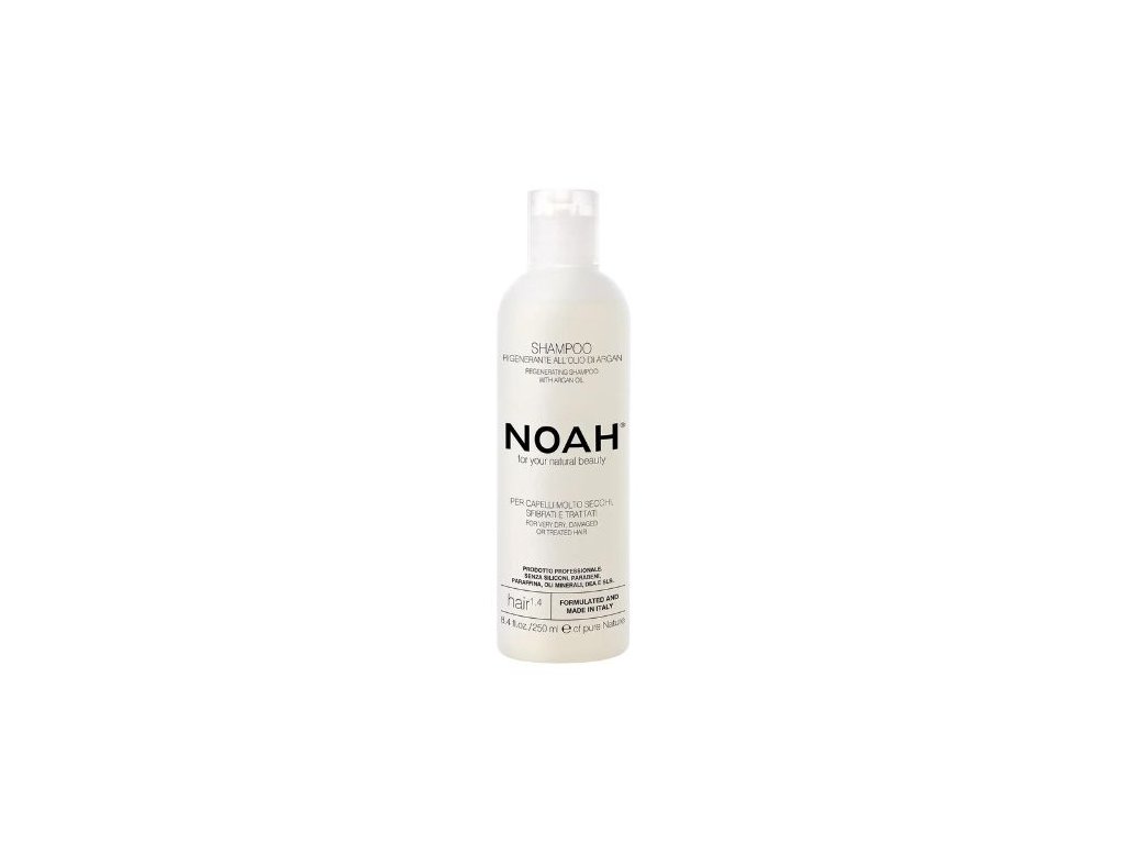 Regeneračný šampón na vlasy s arganovým olejom Noah 250ml Regeneračný šampón s arganovým olejom od Noah čistí a ošetruje najmä veľmi suché, poškodené alebo chemicky ošetrené vlasy. Kľúčové zložky: Povrchovo aktívna látka z arganového oleja - povrchovo aktívna látka z arganového oleja, ktorá vytvára jemnú penu; ideálna pre citlivú pokožku hlavy. Zmes povrchovo aktívnych látok prírodného pôvodu - zmes troch povrchovo aktívnych látok prírodného pôvodu: dve z kokosového oleja s veľmi dobrou penivosťou, jedna z olivového oleja na dobré, ale neagresívne čistenie vlasov. Arganový olej - Arganový olej je cenný prírodný rastlinný olej získavaný zo semien Argania spinosa fisovaných za studena. Je bohatý na esenciálne minerály vo forme fytosterolov a tokoferolov, ktoré mu dodávajú vitalizačné, antioxidačné, upokojujúce a elastické vlastnosti. Je ideálny pre poškodené alebo nadmerne namáhané vlasy, pretože zabraňuje vysušovaniu tým, že na vlasoch vytvára ochranný film. Vďaka svojmu zloženiu má silný hydratačný účinok, zanecháva vlasy žiarivé a jemné. Aplikácia: Naneste šampón na vlhké vlasy a napeňte. Nechajte krátko pôsobiť a dôkladne opláchnite. V prípade potreby aplikáciu opakujte.Dodatočné parametre