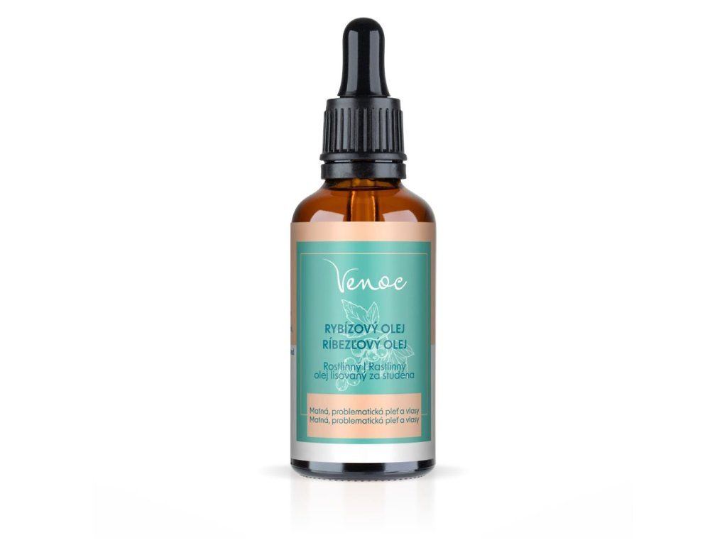 Ríbezľový olej Venoc je 100 % prírodný olej lisovaný zo semien čiernych ríbezlí (Ribes nigrum). Tento výnimočný olej je známy svojím vysokým obsahom esenciálnych mastných kyselín (omega-3, omega-6, omega-9), vitamínu C, E a antioxidantov, ktoré účinne podporujú regeneráciu pleti, zlepšujú jej hydratáciu a navracajú jej sviežosť a vitalitu.