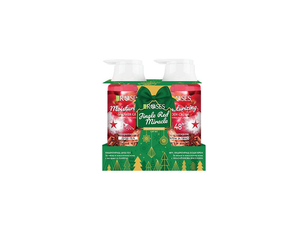 ROSES Darčekový set Jingle Red Miracle je navrhnutý ako harmonická kombinácia sprchového gélu a telového krému, ktoré spolu vytvárajú kompletný zimný rituál starostlivosti o pokožku. Hrejivá vianočná vôňa so škoricou premení každodennú hygienu na príjemný zmyslový zážitok a zanechá pokožku sviežu, hebkú a jemne prevoňanú.