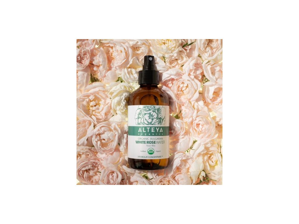 Ružová voda Alteya je 100% čistá a parou destilovaná voda, vyrobená z čerstvých, organických kvetov Rosa Alba. Tieto ruže patria medzi najvzácnejšie olejnaté ruže. V porovnaní s ružovou vodou z Rosa Damascena má táto voda jemnejšiu a ľahšiu kvetinovú vôňu, pričom zachováva všetku komplexnosť charakteru ruže Alba. Využíva unikátnu destilačnú techniku, ktorá kombinuje storočné tradície s modernými technológiami, aby zachovala biodynamickú energiu rastliny ruže.