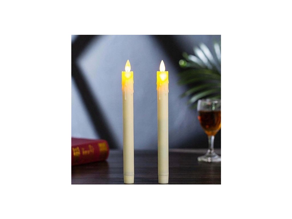 Sada 2KS dlhé, tenké krémové LED sviečky