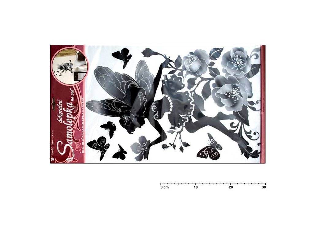 Samolepky na zeď víla černá glitry a kamínky 60x32cmDodatočné parametre