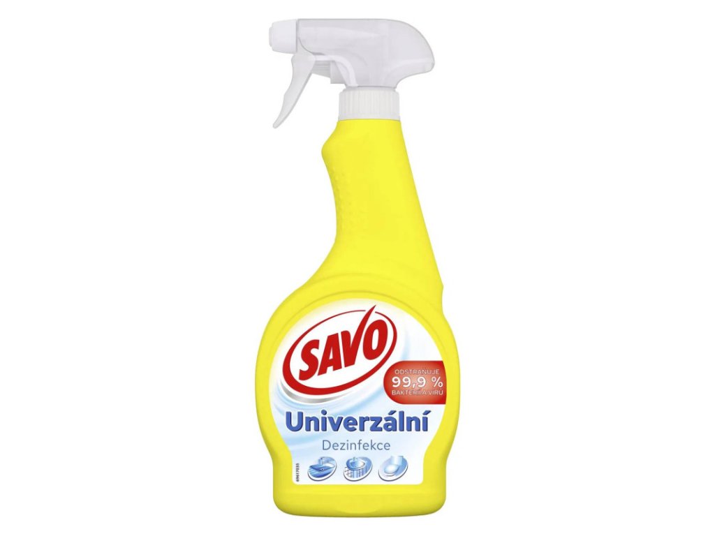 SAVO Univerzálny dezinfekčný a čistiaci sprej 500 ml Zaistite si maximálnu hygienickú čistotu so SAVO Univerzálnym Dezinfekčným a Čistiacim Sprejom. Tento efektívny čistiaci prostriedok účinne odstraňuje až 99,9 % baktérií a vírusov z umývateľných povrchov. Skvele sa hodí na dezinfekciu kuchynských dosiek, sanitárnej keramiky, toaliet, obkladov, odpadkových košov a ďalších povrchov vo vašej domácnosti. Účinná dezinfekcia: Odstraňuje až 99,9 % baktérií a vírusov. Univerzálne použitie: Vhodný na kuchynské dosky, toalety, obklady, sanitárnu keramiku a ďalšie umývateľné povrchy. Obsahuje bieliace činidlá na báze chlóru, ktoré pomáhajú odstraňovať škvrny. Ekologickejšie balenie: Nádobka je vyrobená z 50 % recyklovaných plastov. Praktický mechanický rozprašovač: Umožňuje jednoduché použitie aj na ťažko prístupných miestach. Rýchle a efektívne čistenie, ktoré šetria váš čas. Použitie: Aplikácia: Nastriekajte prípravok na čistený povrch. Čakanie na účinok: Pre baktericídny účinok: nechajte pôsobiť 15 minút. Na likvidáciu vírusov: nechajte pôsobiť 60 minút. Čistenie: Zotrite vlhkou handričkou. Oplachovanie: Plochy a predmety, ktoré prichádzajú do styku s potravinami, opláchnite pitnou vodou po 30 minútach. Upozornenie: Nepoužívajte na drevo, hliník, linoleum, koberce, textílie, poškodené alebo poškriabané povrchy. Po aplikácii na chróm alebo pokovované povrchy ich ihneď opláchnite. Ideálne na: Kuchynské dosky a sanitárnu keramiku Toalety, obklady a zrkadlá Odpadkové koše a ďalšie umývateľné plochy Cena je za bal./500ml