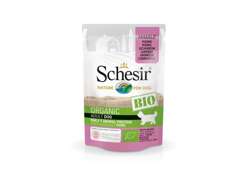 Schesir Bio Dog - bravčové je vyvážená a kompletná bio strava pre dospelých psov všetkých plemien.Dodatočné parametre