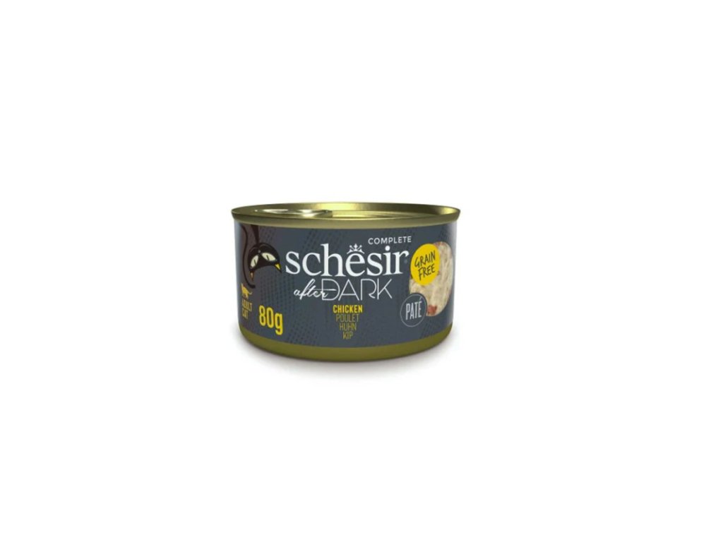 Schesir Cat After Dark Paté je kopmpletné strava spájajúca chutné filety z kuracieho mäsa zmixované do textúry paštéty s kúskami vnútorností ako pečeň, žalúdok a srdiečka. Do tohto krmiva sa Vaša mačka zamiluje. Kompletná a vyvážená strava je najlepším variantom výživy Vašej mačky.Dodatočné parametre