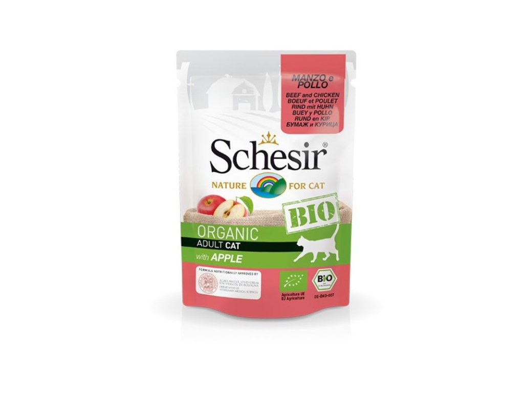 Schesir BIO - Hovädzie a kuracie s jablkom predstavuje lahodnú a vyváženú stravu pre dospelé mačky.Dodatočné parametre