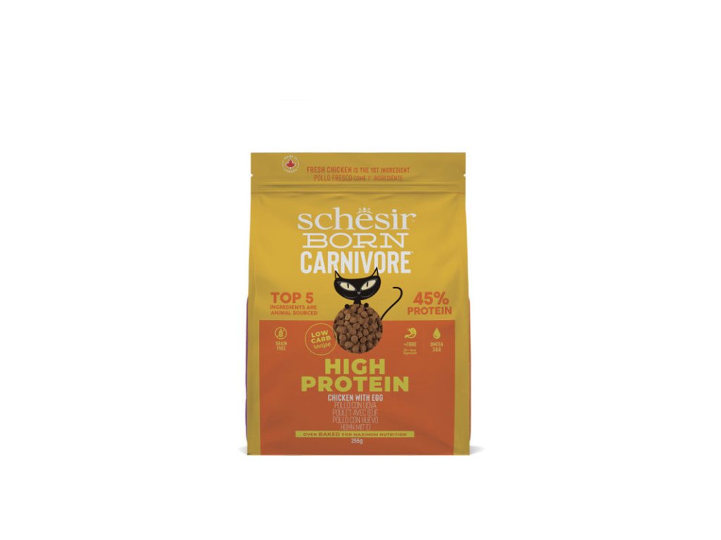 Schesir Cat Born Carnivore Adult - Čerstvé kuracie s vajcom je kompletné krmivo vo forme pomaly pečených granúl pre dospelé mačky s vysokým obsahom bielkovín. Receptúra Born Carnivore bola vyvinutá pre skutočných mačacích mäsožravcov s fyziologickou potrebou prijímať čerstvé mäso a ryby. Receptúra inšpirovaná prirodzenou potravou mačiek vo voľnej prírode s vysokým obsahom bielkovín (45%) pri nízkom obsahu sacharidov (11,4%)Dodatočné parametre