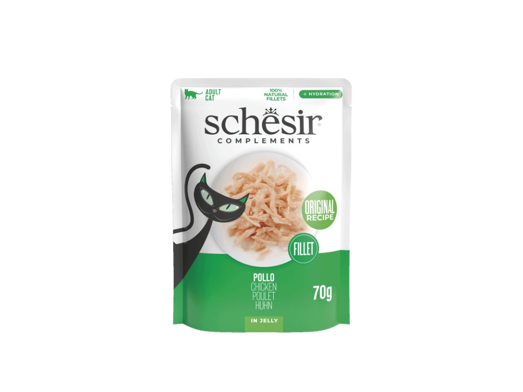 Schesir Jelly Cat - Kuracie filety je kompletná strava z celých filet mäsa uvareného vo vlastnom vývare s ryžou.Dodatočné parametre