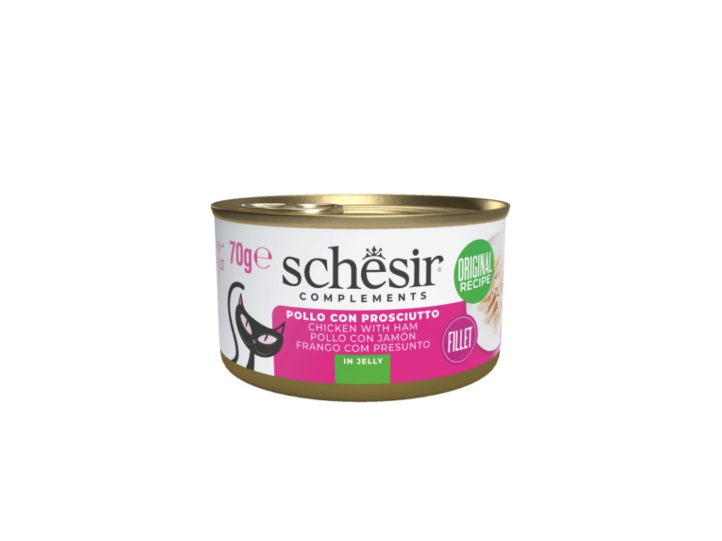Schesir Jelly Cat - Kuracie so šunkou je doplnkové krmivo určené pre dospelé mačky.Dodatočné parametre