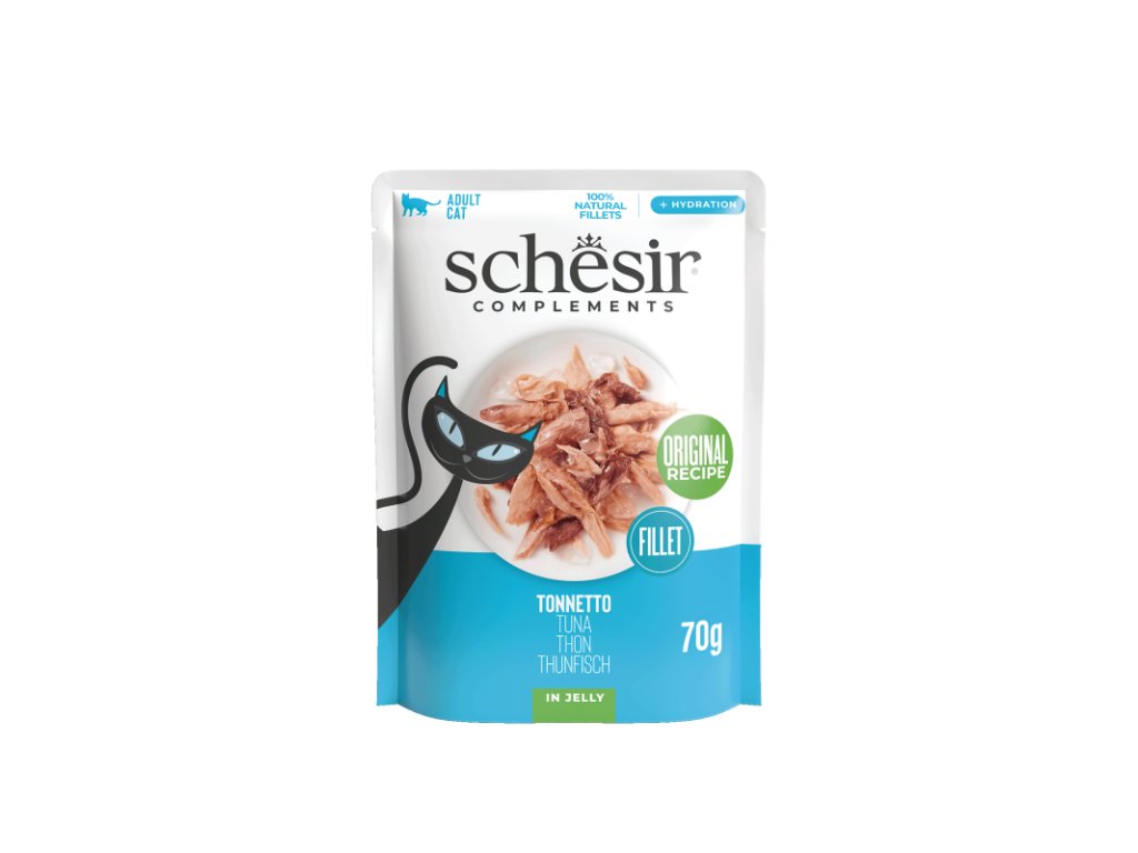 Schesir Jelly Cat - Tuniak s ryžou je kompletná strava z celých filiet tuniaka uvareného vo vlastnom vývare s ryžou.Dodatočné parametre