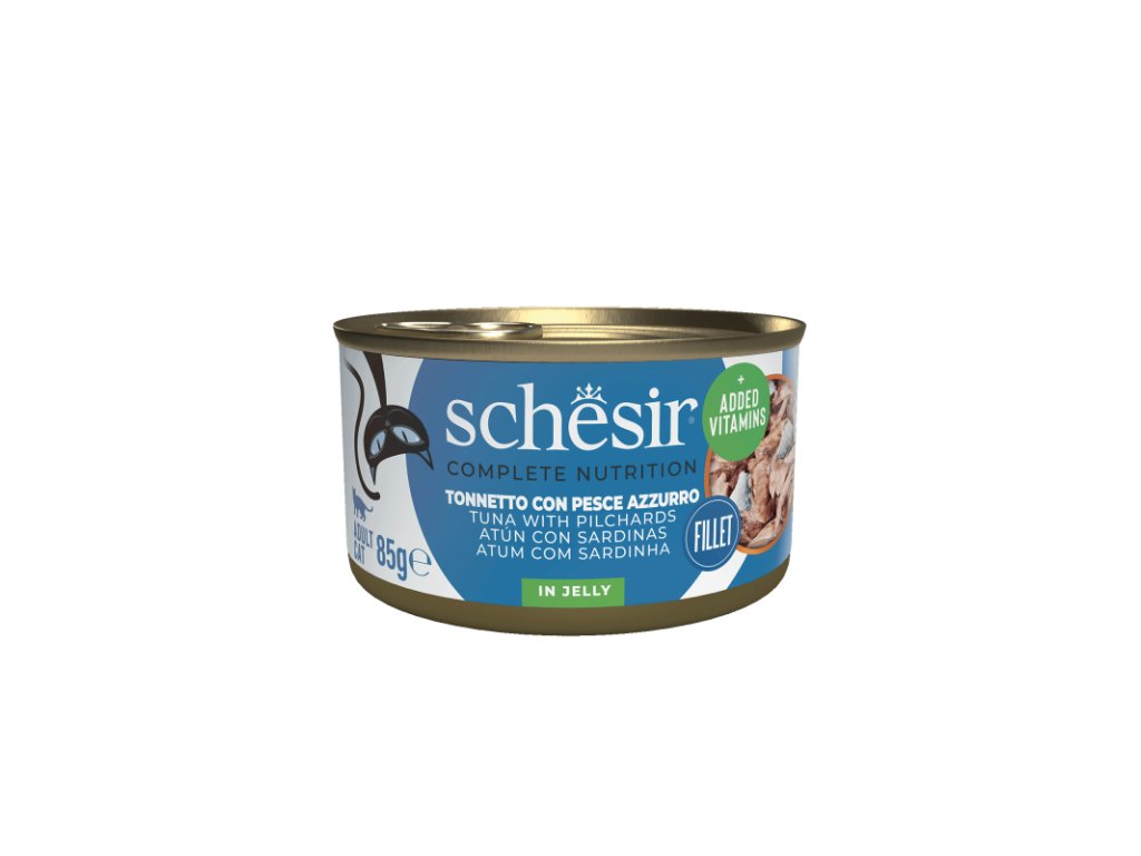 Schesir Jelly Cat - tuniak so sardinkami v želé je kompletné krmivo pre dospelé mačky.Dodatočné parametre
