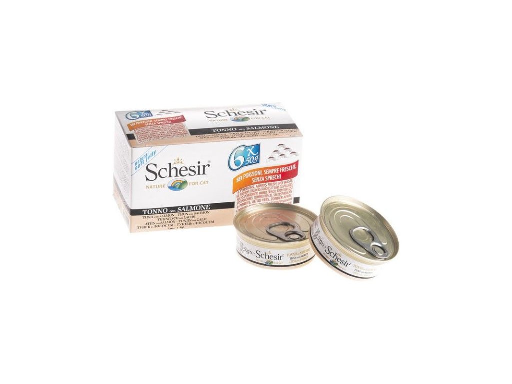 Schesir Multipack - tuniak a losos je doplnkové krmivo pre dospelé mačky.Dodatočné parametre