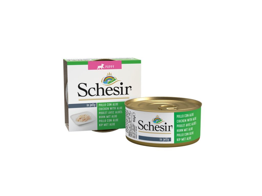 Schesir Puppy - kuracie s aloe vera je vynikajúca lahôdka pre šteniatka v podobe celých kúskov z kuracích pŕs s ryžou a s Aloe Vera v slnečnicovom oleji.Dodatočné parametre