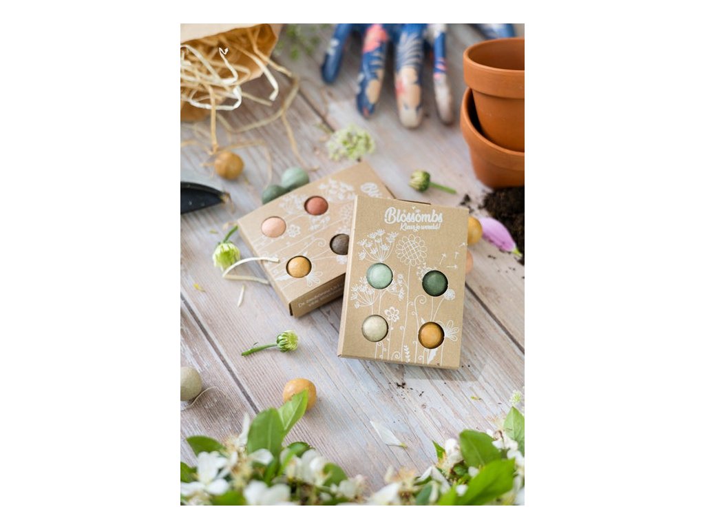 Semienkové bomby - darčeková sada mini "Pre najlepšiu maminku" Kytica Blossombs 4 ks Ako semienkovú bombu zasadiť, aby určite vyrástla? Kedy začať vysádzať? Bombu môžete zasadiť kedykoľvek počas roka, ale kvety z nej rašia zhruba od marca do októbra. Kvety v bombách Blossombs sú letničky. Keď bombu zasejete v marci až septembri, vykvitne ten istý rok. Ak ju zasadíte po sezóne, na úrodu sa môžete tešiť budúcu jar, ak semienka nezjedia vtáky alebo hmyz. Ílové guličky obsahujú organickú zmes semienok divokých kvetov, ktoré môžu kvitnúť v rôznom čase. Niektoré kvietky sa tak objavia hneď na jar, iné až na jeseň. Príroda vám teda pripraví prekvápko podľa seba :) Kam bombu zasadiť? Úplne kamkoľvek, ideálne von na záhradu, okolo domu alebo tam, kde by lúčne kvety urobili radosť. Guličku môžete zasadiť aj do kvetináča na balkón alebo za okno. Myslite ale na to, že semienka majú radi dostatok svetla, priestoru a výživnej pôdy. Blossombs nevysievajte v chránených prírodných rezerváciách. Ako bombu zasadiť? Na 1 m2 vonkajšej pôdy môžete umiestniť až 4 guličky. Pokiaľ chcete lúku v kvetináči, na priemer 20 cm stačia 1 až 3 guličky. Na dlhý balkónový kvetináč je akurát 3 až 6 guličiek vyskladaných v rade vedľa seba na 1 m. Pre bujnejší porast ich môžete použiť viac, len vedzte, že kvety si potom môžu konkurovať a nevyrastú alebo nevykvitnú všetky rovnako. Bombu zľahka vtlačte do mäkkej hliny, nie veľmi – len tak, aby zostala trčať na povrchu, a zalejte ju alebo počkajte na dážď. Po pár dňoch guličky popraskajú, ako sa z nich začnú predierať prvé zelené rastlinky. Po +/- 8 týždňoch (a cca od apríla, až bude dostatočné teplo) sa začnú objavovať prvé lúčne kvety.Dodatočné parametre