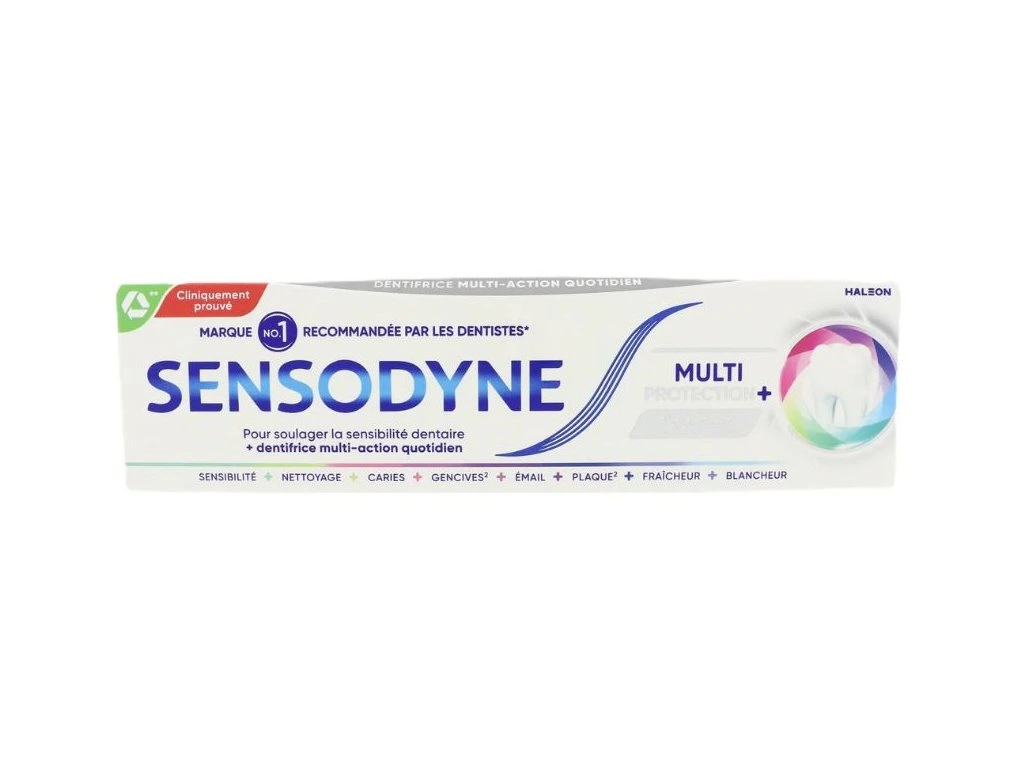 Sensodyne Multi Protection + Whitening je fluoridová zubná pasta určená na každodenné použitie a na úľavu od citlivosti zubov deň za dňom. Denná zubná pasta Sensodyne Multi Protection + ponúka viacero výhod pre vaše ústa a tiež klinicky overenú ochranu pred citlivosťou zubov. Pomáha: - Posilňovať sklovinu - Podporovať zdravé ďasná - Chrániť pred zubným kazom - Hĺbkovo čistiť - Osviežovať dych - Odstraňovať zubný povlak - Zmierňovať citlivosť zubov - Bieliť zubyDodatočné parametre