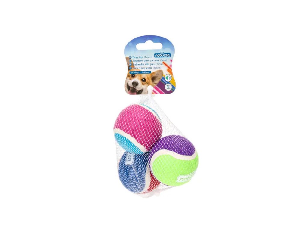 Set gumených lôpt pre psa Tennis - 6,4cm obsahuje 3ks mäkších gumených loptičiek s funkciou pískania, vhodných pre psov malých a stredných plemien.Dodatočné parametre