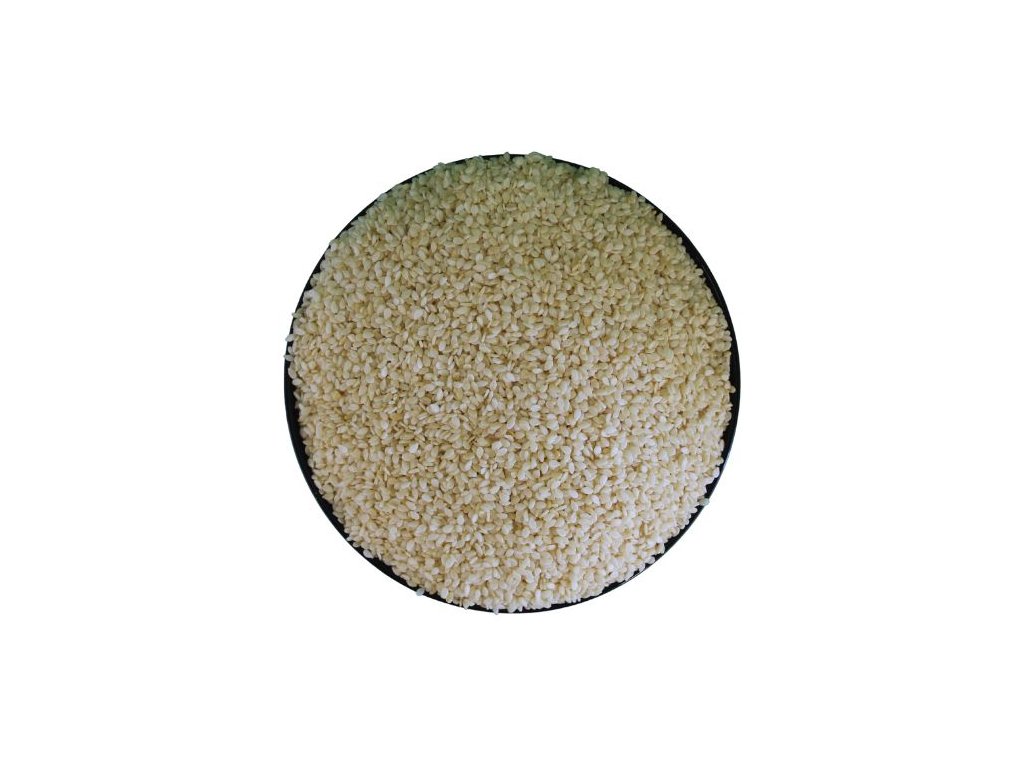 Sezam biely lúpaný  Biely sezam je nielen chutný, ale aj výživný. Obsahuje vysoký podiel zdravých tukov, bielkovín, vlákniny a široké spektrum vitamínov a minerálov. sezamové semienka sú tiež známe svojím vysokým obsahom antioxidantov, ako je sezamolín a sezamín, ktoré majú silné protizápalové a ochranné účinky na bunky. Vlastnosti: Zdravé tuky: Lúpaný biely sezam obsahuje vysoký podiel nenasýtených mastných kyselín, ktoré podporujú zdravie srdca a znižujú hladinu zlého cholesterolu. Bohatý na bielkoviny: sezamové semienka sú dobrým zdrojom rastlinných bielkovín, čo z nich robí vynikajúci doplnok vegetariánskej a vegánskej stravy. Vitamíny a minerály: Sú bohaté na vitamíny B skupiny (najmä B1, B6 a kyselinu listovú), ako aj minerály ako vápnik, železo, horčík, fosfor, draslík a zinok, ktoré sú nevyhnutné pre zdravé kosti, zuby a metabolizmus. Vysoký obsah vlákniny: Vláknina v sezamových semienkach podporuje trávenie, znižuje riziko zápchy a pomáha pri regulácii hladiny cukru v krvi. Antioxidanty: Sezamolín a sezamín sú silné antioxidanty, ktoré pomáhajú chrániť bunky pred oxidačným stresom, znižujú zápal a môžu zlepšovať zdravie pečene. Bezlepkový: Lúpaný biely sezam je prirodzene bezlepkový a je vhodný pre ľudí s celiakiou alebo intoleranciou na lepok. Univerzálnosť: Môže byť použitý v sladkých aj slaných jedlách, v šalátoch, pečive, omáčkach alebo na výrobu tahini. Krajina pôvodu: Brazília Výživová tabuľka (Lúpaný biely sezam) Zložka Hodnota na 100 g Energia 565 kcal Bielkoviny 16,96 g Tuky 48,0 g - z toho nasýtené mastné kyseliny 6,92 g Sacharidy 9,14 g - z toho cukry 0,48 g Vláknina 16,90 g Sodík 39 mg