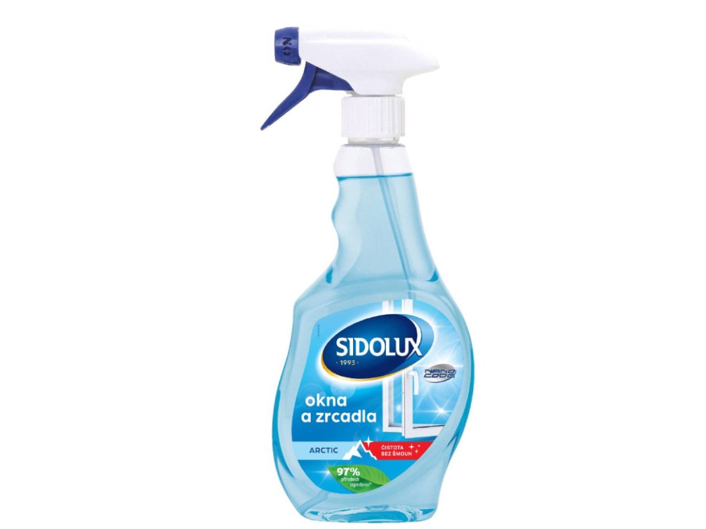 SIDOLUX na okná a zrkadlá s NANO technológiou Arctic - 500ml Čisté a priezračné okná so sviežou vôňou Arctic! Vďaka NANO technológii okná umyté týmto prostriedkom zostanú čisté dvakrát dlhšie než pri použití iného produktu. Nezanecháva šmuhy a má príjemnú vôňu. Základnou zložkou produktu je alkohol. Vďaka tomu odstraňuje z okien všetky nečistoty a nezanecháva šmuhy. Nemenej dôležitou zložkou receptúry je technológia Nano Code. Tá vytvára na povrchu skla neviditeľnú vrstvu, ktorá pôsobí proti usadzovaniu nečistôt, dážď po nej steká rovnomerne a nezostávajú na skle zaschnuté kvapky vody. Okná tak zostávajú čisté dokonca dvakrát dlhšie než po použití iného prostriedku na umývanie okien. Vlastnosti: čistí bez zbytočných šmúh a škvŕn rýchle použitie vo forme spreja pre pohodlnú aplikáciu zanecháva sviežu vôňu Arctic, ktorá neutrálne pôsobí v interiéri pomáha znižovať následné usadzovanie prachu vďaka tenkej ochrannej vrstve ˶NANO CODE˝ na povrchu Použitie: Čistite okná v tieni alebo pri mierne chladnejšom počasí, aby prostriedok nepreschol príliš rýchlo Používajte suchú mäkkú handričku pre dokonalý lesk bez šmúh Na silné nečistoty najprv ľahko navlhčite a potom aplikujte čistič. Pre optimálny výsledok stačí rozprášiť prostriedok priamo na čistený povrch a následne vytrieť suchou a čistou handričkou. Odporúčame používať mäkké utierky z mikrovlákna alebo papierové utierky bez farbív, aby nedošlo k šmuhám alebo vláknam na skle. Pri väčšom znečistení opakujte aplikáciu a utrite smerom zhora nadol pre lepšiu kontrolu kvapiek. Sidolux čistič okien kombinuje jednoduchosť použitia a spoľahlivý efekt bez zdĺhavého drhnutia. Je ideálny pre zamestnané domácnosti aj pre tých, ktorí chcú rýchlo upraviť vzhľad okien a zrkadiel pred návštevou alebo každodennou údržbou. Vôňa Arctic dodá priestoru pocit čerstvosti bez silnej parfumácie. Cena je za bal./500ml