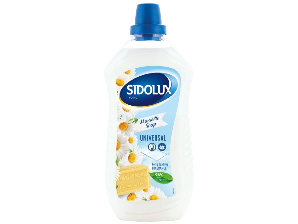 SIDOLUX UNIVERSAL Marseillské mydlo 1L Univerzálne čistiace prostriedky na všetky umývateľné povrchy. Jednoduchosť použitia a dokonalé čistiace schopnosti sú podčiarknuté príjemnou vôňou, ktorá vydrží v priestore ešte dlho po upratovaní. Závan Stredomoria, vyhlásená vône z okolia Marseille, sa u Vás doma môže zabývať nastálo. Stačí používať Sidolux univerzálny čistiaci prostriedok s vôňou marseillského mydla. Prostriedok nielen že nádherne vonia, ale tiež si bez problémov poradí s čistením rôznorodých povrchov! Tento univerzálny čistiaci prostriedok je určený na rýchle a efektívne odstraňovanie bežných nečistôt a mastnoty z umývateľných povrchov doma aj v kancelárii. Vhodný na podlahy, dlažbu, laminát, povrchy v kuchyni a kúpeľni, rovnako ako na ostatné umývateľné plochy, ktoré si prajete umyť a zároveň prevoňať. Sidolux univerzálny čistiaci prostriedok s vôňou marseillského mydla je už po mnoho rokov neodmysliteľnou súčasťou miliónov európskych domácností. A nie náhodou. Produkt sa stal synonymom čistoty a krásne vône, ktorá sa v domácnosti rozhostí po upratovaní. Vďaka unikátnemu systému Soda Power, ktorý je súčasťou prostriedku a ktorého pôsobenie zmäkčuje vodu, odstraňuje Sidolux univerzálny čistiaci prostriedok veľmi rýchlo nečistoty z povrchu. Sidolux univerzálny čistiaci prostriedok je Vaším spoľahlivým pomocníkom pri domácom upratovaní. Produkt sa skvele hodí na čistenie všetkých umývateľných povrchov. Vlastnosti: Univerzálne použitie na široké spektrum umývateľných povrchov Soda Power na zmäkčenie vody a účinné odmastenie Možnosť použitia ako riedený roztok na bežné čistenie aj ako koncentrát na silné znečistenie Elegantná vôňa marseillského mydla s tónmi harmančeka a jazmínu, ktorá prevonia domácnosť Objem 1 l – praktické balenie pre bežné domácnosti Použitie: Na každodenné upratovanie používajte slabšie riedenie, pri mastných škvrnách zvýšte koncentráciu Teplá voda zintenzívni čistiaci účinok, najmä pri údržbe podláh Pre dlhodobé prevoňanie urobte vytieranie večer – vôňa sa bude šíriť cez noc Na bežné vytieranie a utieranie povrchov pripravte riedený roztok podľa dávkovania. Na silné nečistoty aplikujte neriedený alebo menej riedený koncentrát a krátko zotrite. Produkt je ideálny do teplej alebo horúcej vody – Soda Power sa pri vyššej teplote aktivuje a zlepšuje účinnosť proti mastnote. Dávkovanie: 1,5 uzáveru do 5 l vody (orientačne). Pri vytieraní s mopom odporúčame použiť teplú alebo horúcu vodu pre lepší účinok Soda Power. Pre silné znečistenie použite vyššiu koncentráciu a krátko zotrite vlhkou handrou alebo mopom. Sidolux Universal Marseillské mydlo s tónmi harmančeka a jazmínu spája praktickosť univerzálneho čističa s príjemným vonným zážitkom. Pokiaľ hľadáte prostriedok, ktorý nielen čistí, ale aj prevonia domácnosť niekoľkými dňami, a zároveň zvládne mastnotu vďaka Soda Power, je táto voľba vhodná práve pre vás. Cena je za bal./1L