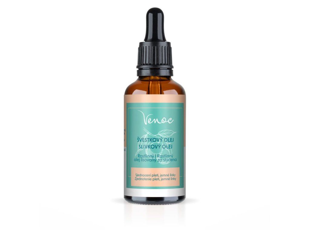 Slivkový olej Venoc je 100 % prírodný olej lisovaný zo semien sliviek (Prunus domestica), známy svojou jemnou mandľovo-marcipánovou vôňou a bohatým obsahom antioxidantov a vitamínov. Tento olej patrí medzi luxusné prírodné oleje, ktoré intenzívne regenerujú pleť, zjemňujú vrásky a zlepšujú jej tón.