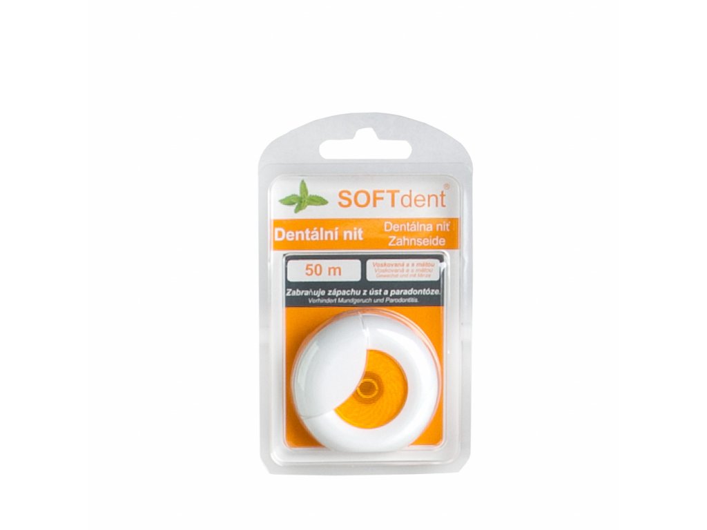 SoftDENT dentálna voskovaná niť s MÄTOU 50m