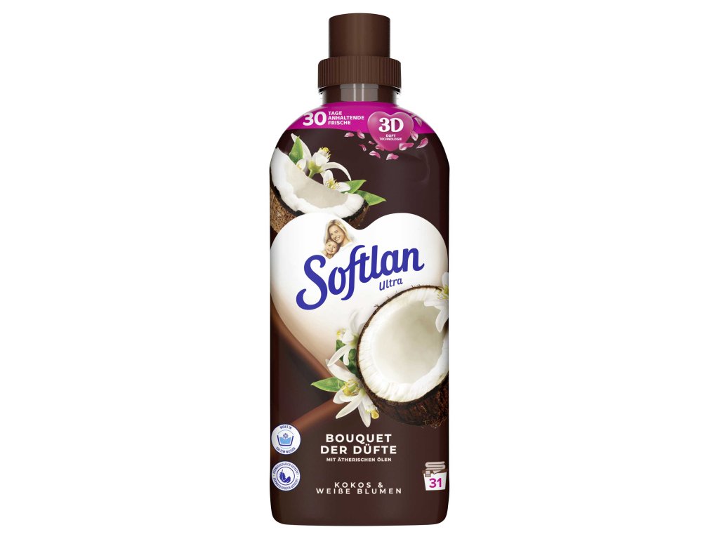 Produkt predávaný prevažne na Nemeckom trhu. Softlan Ultra kokos a biely kvet koncentrovaná aviváž udrží vaše prádlo dlho svieže a plné vône. Obsahuje látky šetrné k tkaninám, dodáva prádlu mäkkosť a dlhotrvajúcu sviežosť a uľahčuje žehlenie. Vďaka dermatologicky testovanému zloženiu aviváže s účinnými látkami na rastlinnej báze je bielizeň nádherne jemná a nádherne vonia. Fľaša je navyše vyrobená zo 100% recyklovaného plastu a fľaša aj viečko sú 100% recyklovateľné.