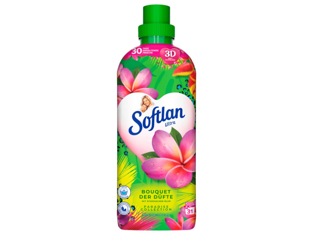 Produkt predávaný prevažne na Nemeckom trhu. Softlan Ultra tropické kvety koncentrovaná aviváž udrží vaše prádlo dlho svieže a plné vône. Obsahuje látky šetrné k tkaninám, dodáva prádlu mäkkosť a dlhotrvajúcu sviežosť a uľahčuje žehlenie. Vďaka dermatologicky testovanému zloženiu aviváže s účinnými látkami na rastlinnej báze je bielizeň nádherne jemná a nádherne vonia. Fľaša je navyše vyrobená zo 100% recyklovaného plastu a fľaša aj viečko sú 100% recyklovateľné.