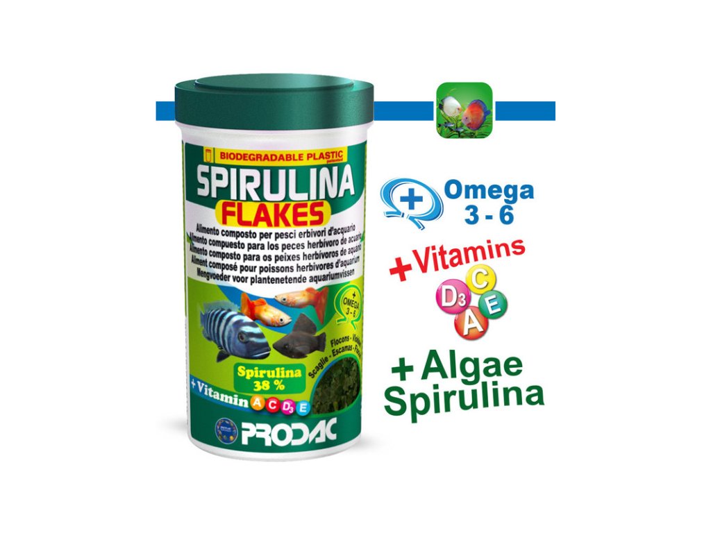 Spirulina Flakes je vločkované krmivo s vysokým obsahom spiruliny pre všetky bylinožravé sladkovodné tropické ryby.Dodatočné parametre