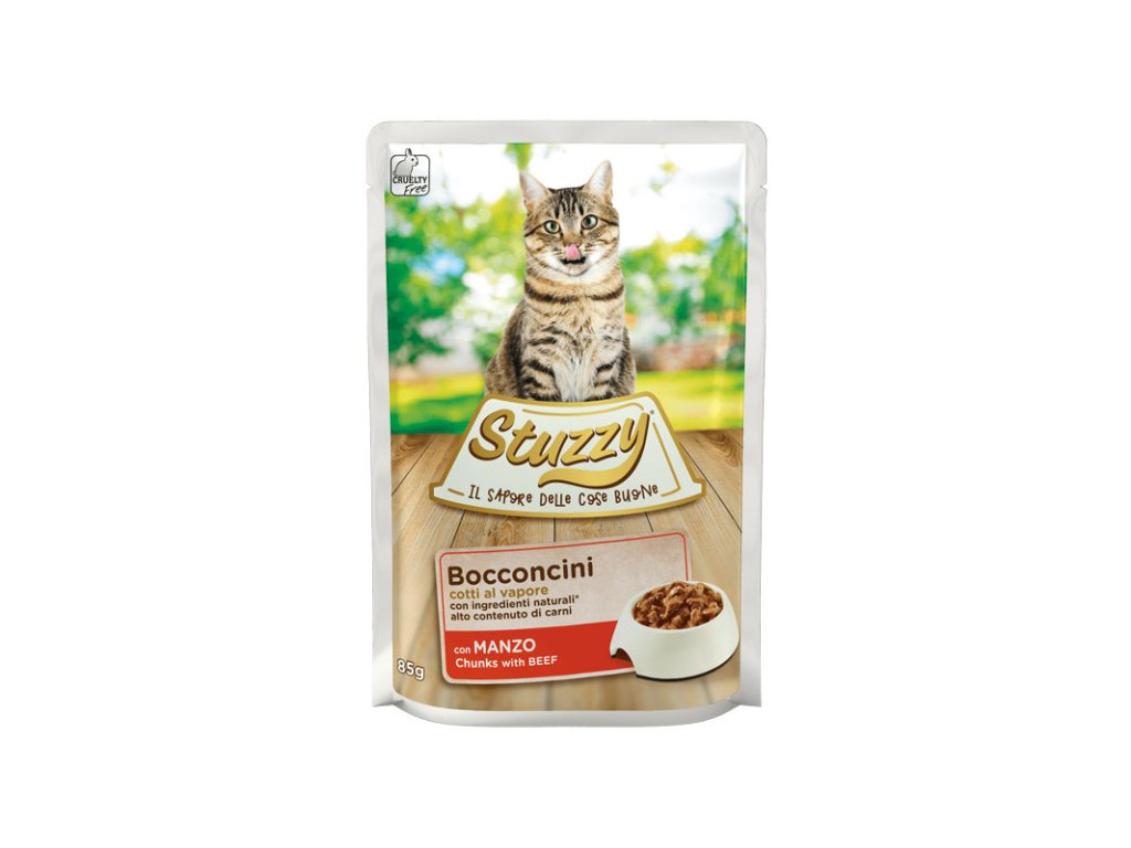 Stuzzy Cat Chunks - Hovädzie kúsky v šťave je kompletné krmivo pre dospelé mačky z hovädzieho mäsa duseného v pare.Dodatočné parametre