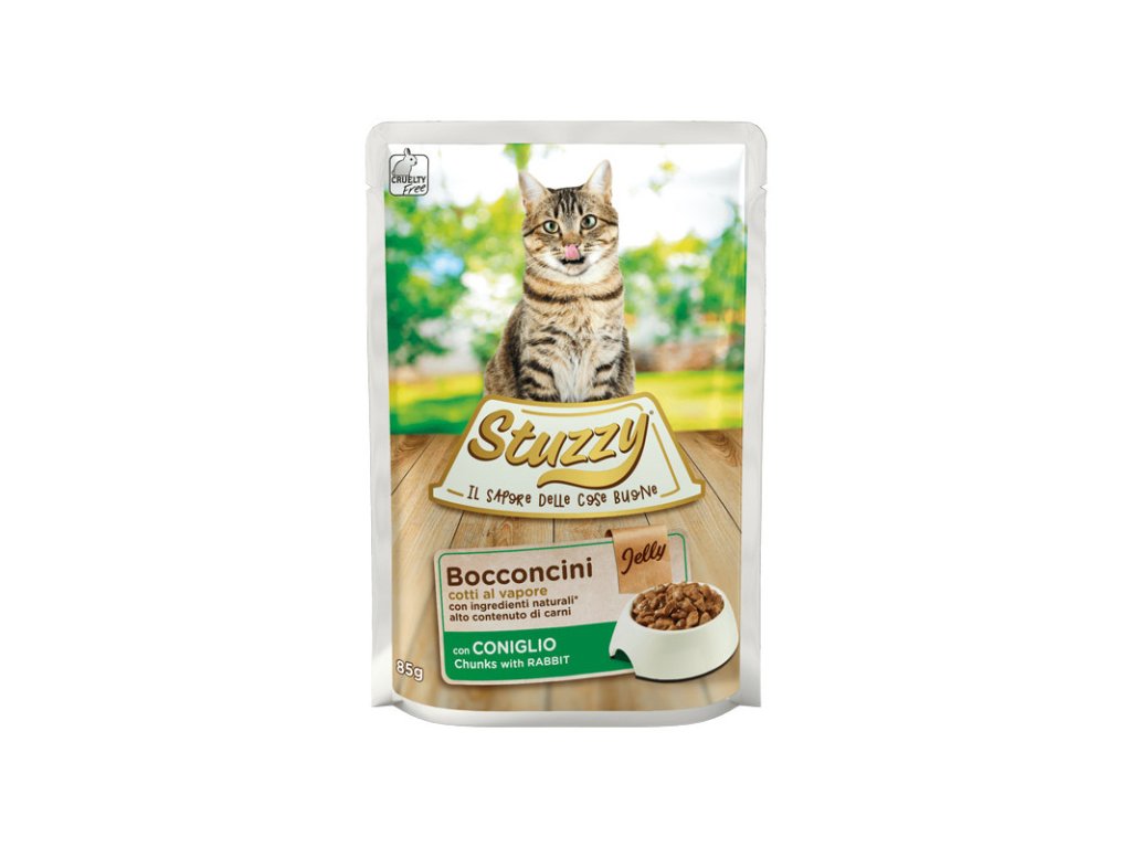 Stuzzy Cat Chunks - Králičie kúsky v želé je kompletné krmivo pre dospelé mačky z králičieho mäsa duseného v pare.Dodatočné parametre