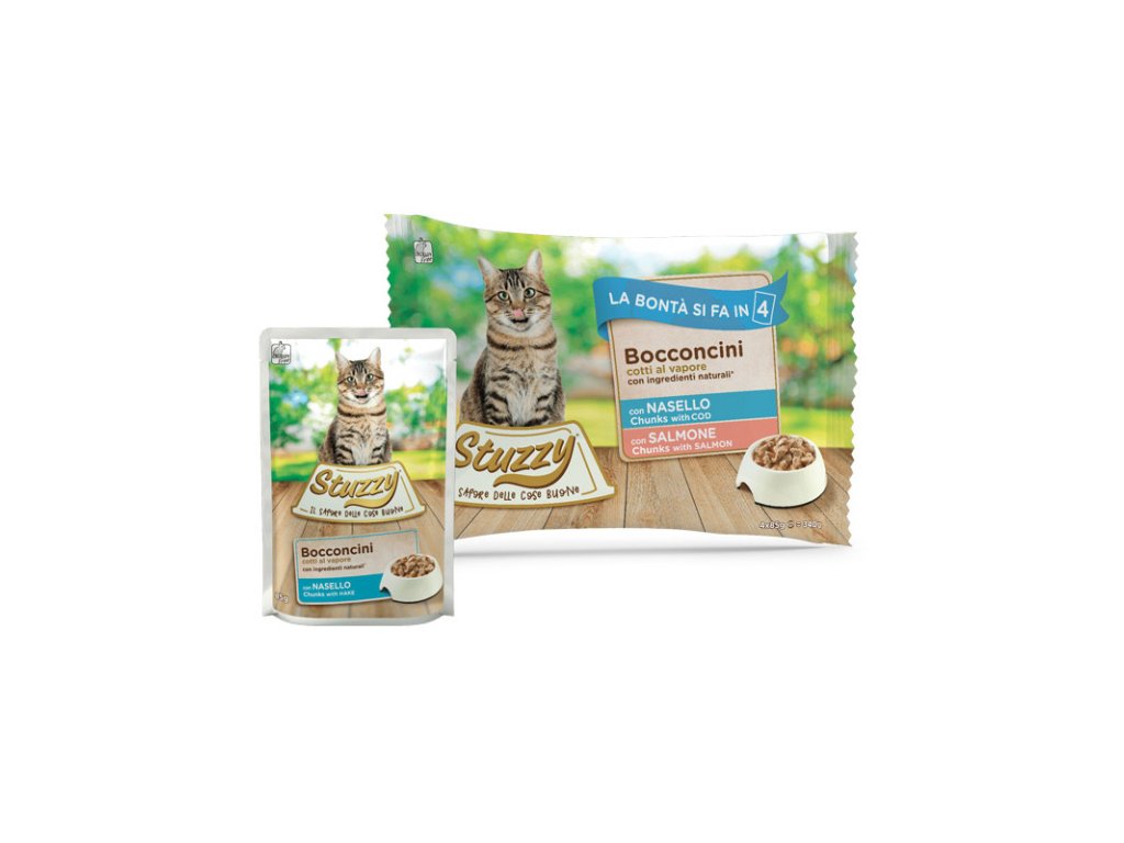 Stuzzy Cat Chunks Multipack treska a losos kúsky - obľúbené kapsičky pre mačky s kúskami mäsa v chutnej omáčke vo výhodnom balení po 4 kusy.Dodatočné parametre