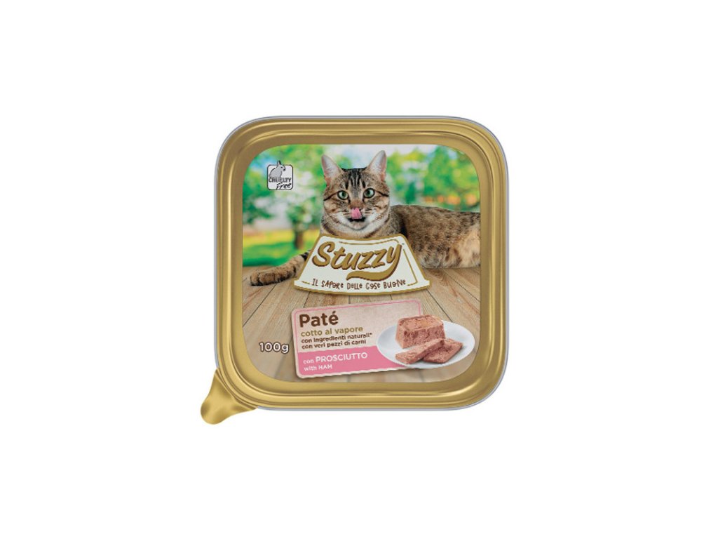 Stuzzy Cat Paté predstavuje lahodnú chuť bravčovej šunky v skutočných kúskoch mäsa v kombinácií s prírodnými surovinami varenými na pare. Stuzzy Cat Paté Adult poskytuje Vašej mačke kompletnú stravu a skutočnú vôňu a textúru mäsa, ktorej určite neodolá.Dodatočné parametre