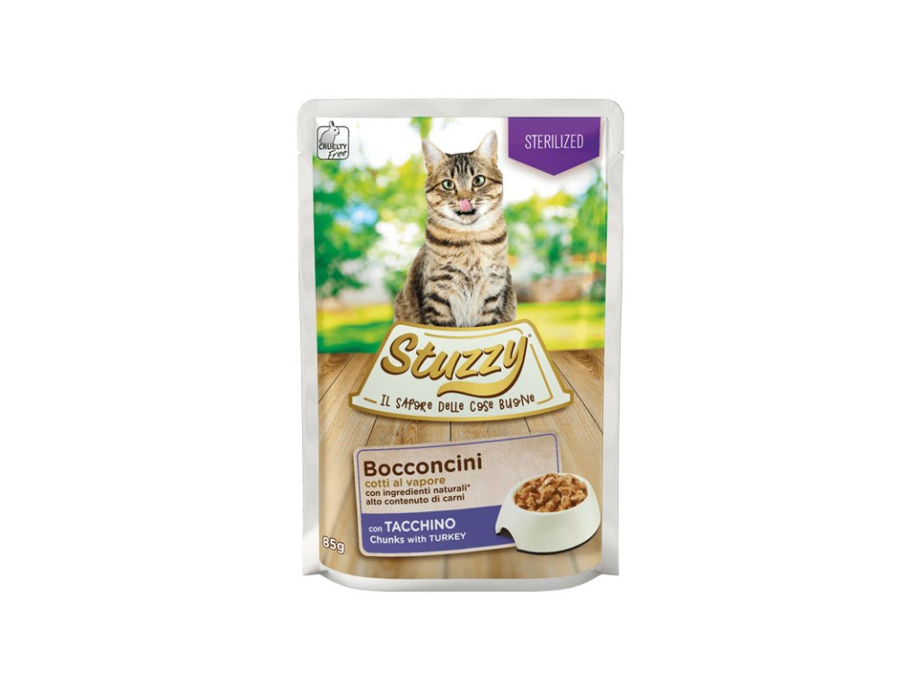 Stuzzy Cat Sterilized Chunks - Morčacie kúsky v šťave je kompletné krmivo z morčacieho mäsa pre kastrátov a sterilizované mačky.Dodatočné parametre