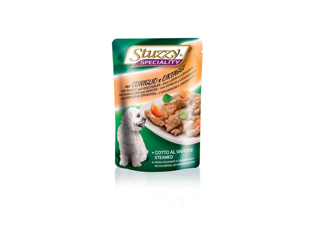 Stuzzy Dog Speciality - králik so zeleninou je mokrá strava pre dospelých psov malých plemien s vynikajúcou chutnosťou.Dodatočné parametre