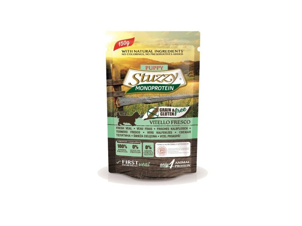 Stuzzy Monoprotein Puppy - teľacie je strava bez obilnín vyrobená z teľacieho mäsa pre šteňatá trpiacich na intoleranciu z niektorých druhov bielkovín.