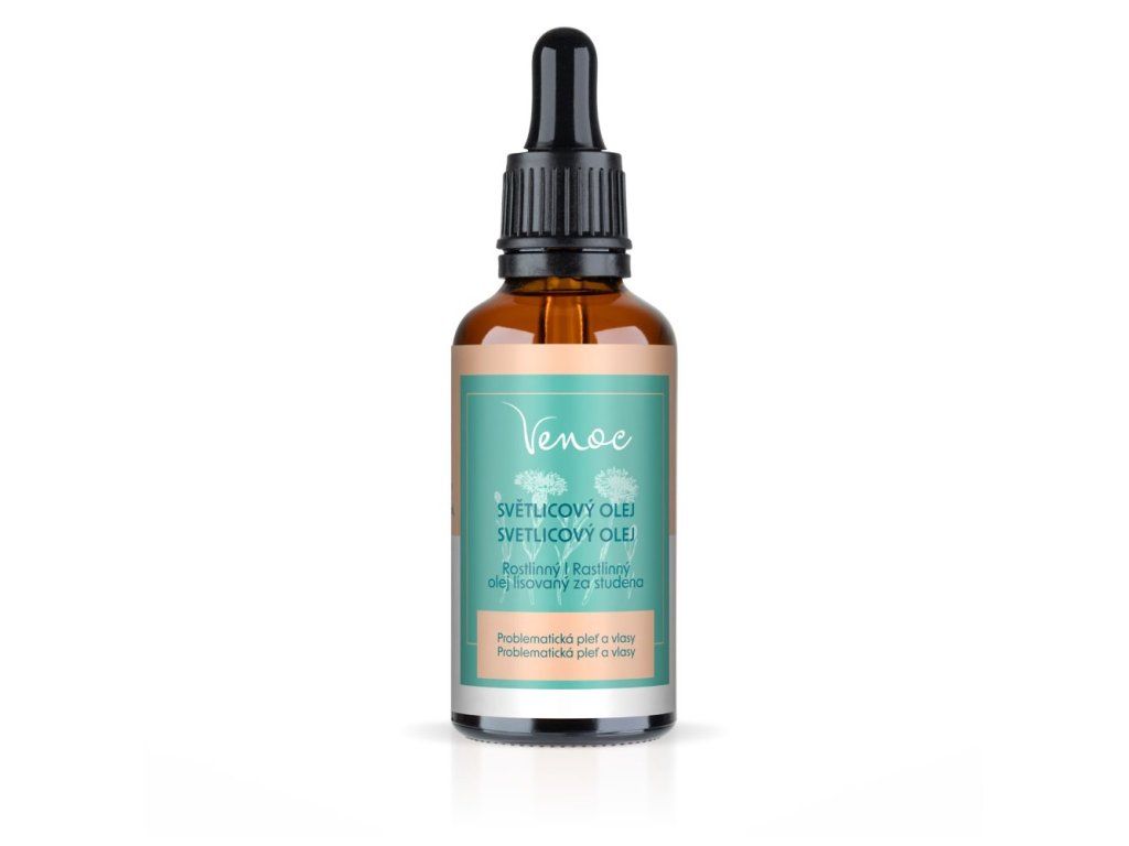 Svetlicový olej Venoc je prírodný pleťový olej s ľahkou textúrou a rýchlou vstrebateľnosťou, vďaka čomu je ideálny aj pre pokožku, ktorá neznesie hutnejšie oleje. Výborne sa hodí pre problematickú, mastnú a aknóznu pleť – pomáha regulovať tvorbu kožného mazu, upokojuje podráždenie a podporuje obnovu kožnej bariéry bez toho, aby upchával póry. Vďaka vysokému obsahu kyseliny linolovej prispieva k hydratácii, hebkosti a rovnováhe pleti, ktorá pri akné často chýba.