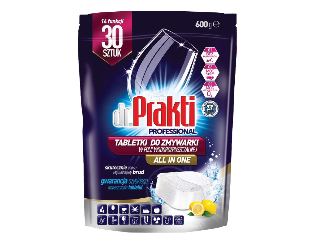 Použitá funkcia bielenia zabraňuje tvorbe škvŕn na riade, funkcia leštidla mu zase dodá oslnivý lesk. Tablety sú bezpečné pre vašu umývačku riadu a chránia ju pred vodným kameňom, čím sa predlžuje jej životnosť. Balenie obsahuje 30 tabliet. Multifunkčný prípravok sa výborne hodí ako prostriedok na ochranu umývačiek riadu napríklad pred hrdzou. Inovatívne zloženie tiež umožňuje efektívne umývanie riadu a príborov a ich čistenie od mastnoty a iných nečistôt. Tablety do umývačky riadu vo fólii rozpustnej vo vode Dr. Prakti dokonale chránia riad pred vznikom nevzhľadných šmúh a škvŕn na ňom a dodávajú mu dokonalú čistotu a lesk. Účinne dezinfikujú riad a eliminujú nepríjemné pachy. Zloženie zmäkčuje vodu, tým sa znižuje pravdepodobnosť usadzovania vodného kameňa na vnútorných častiach umývačky riadu.