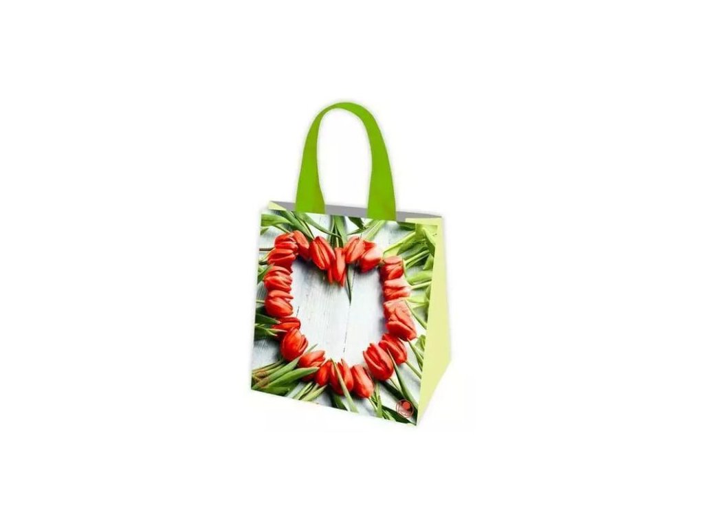 Pevná nákupná taška s uchom s motívom tulipánov. Rozmer 34x34x22cm.