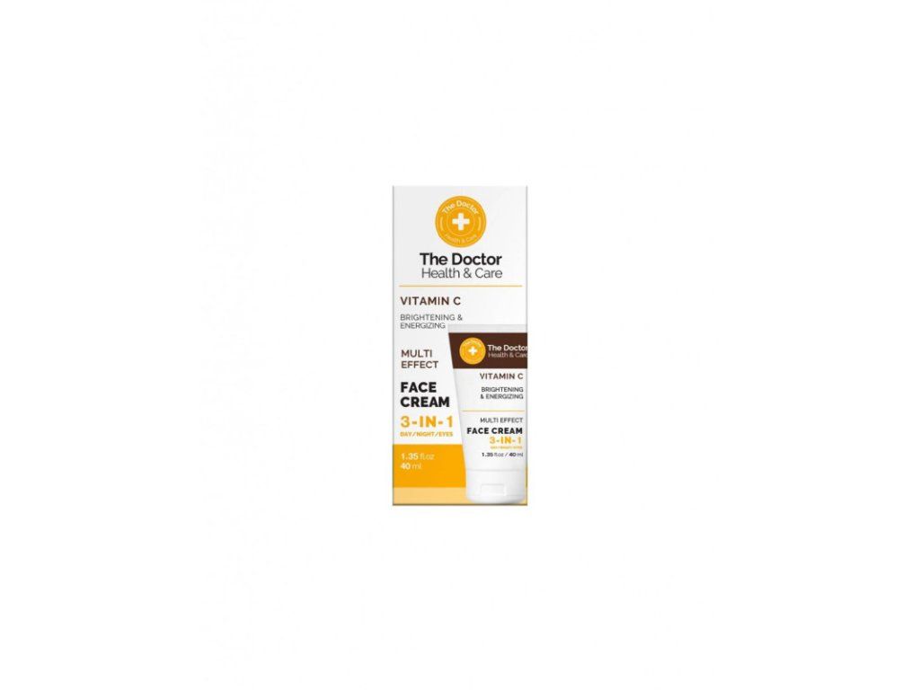 The Doctor krém na tvár VITAMÍN C 3v1 40 ml "VITAMÍN C" je pleťový krém s inovatívnym zložením 3 v 1, ktorý rozjasňuje, dodáva energiu pokožke a skutočnú ochranu. Používa sa na deň a noc, ako aj na starostlivosť o oči. Hlavnou zložkou je vitamín C, cenný antioxidant, ktorý zohráva kľúčovú úlohu pri zlepšovaní stavu pokožky. Krém "VITAMÍN C" je známy svojou schopnosťou rozjasniť pokožku a dodať jej energiu. Vitamín C vyrovnáva farbu, dodáva žiarivosť a účinne zlepšuje textúru pokožky. Vďaka svojmu štruktúrnemu zloženiu má krém hydratačný, regeneračný a relaxačný účinok, obnovuje a revitalizuje pokožku zvnútra. Krém "VITAMÍN C" osviežuje, hydratuje a obnovuje pokožku, zlepšuje jej textúru a má dodatočný efekt pre vyrovnávanie farby pokožky. Použitie tohto krému vám dodá nielen prirodzený lesk ale aj ochranu pred negatívnymi vplyvmi vonkajších faktorov. Cena je z a1ks/30mlDodatočné parametre