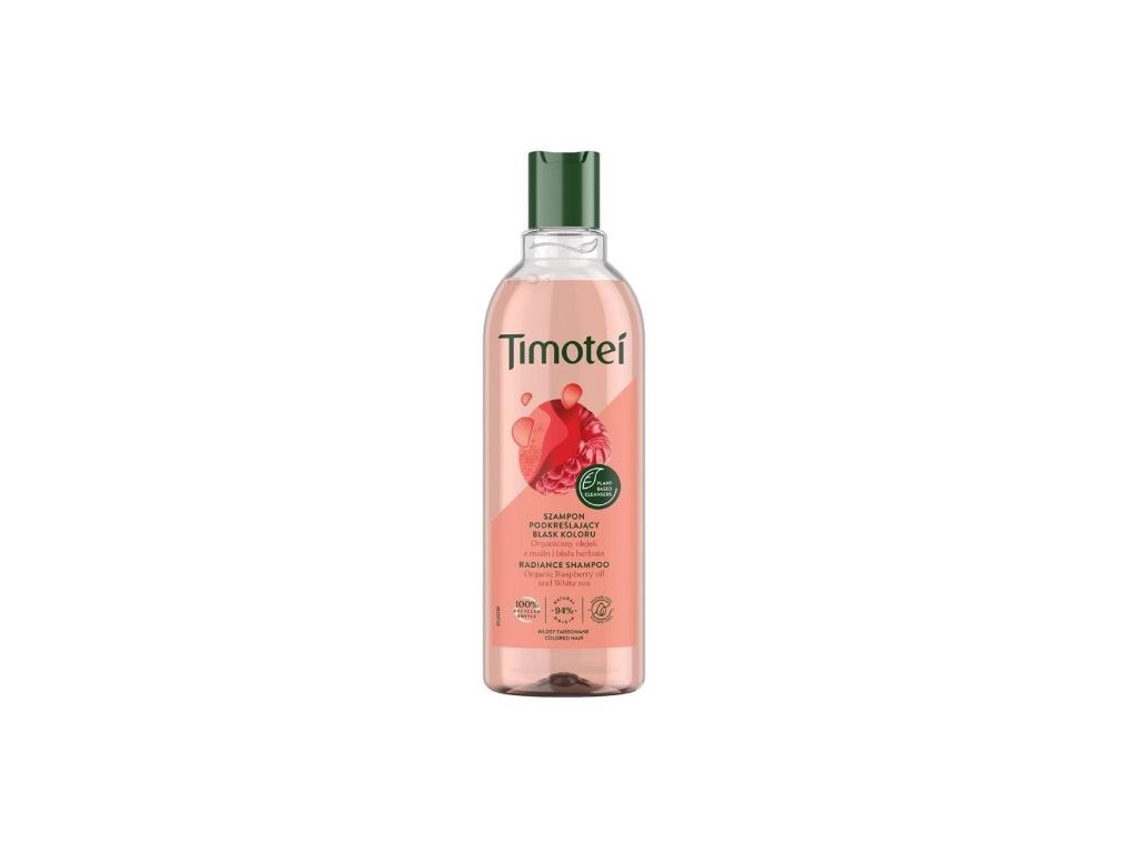 Timotei šampón 400ml Raspberry Oil & White Tea je šampón na zvýraznenie farby je spôsob, ako dosiahnuť, aby farbiaci efekt na vašich vlasoch vydržal ešte dlhšie. Je vyvinutý na starostlivosť o farbené vlasy a obsahuje 100 % prírodný olej zo semienok červenej maliny a organický extrakt z bieleho čaju. Šampón účinne čistí vlasy a zároveň vyživuje pramene, aby farba zostala dlhšie žiarivá. Šampón Timotei obsahuje aj znížené množstvo sulfátov, aby si vaše vlasy zachovali lesk a skvelú kondíciu.Dodatočné parametre