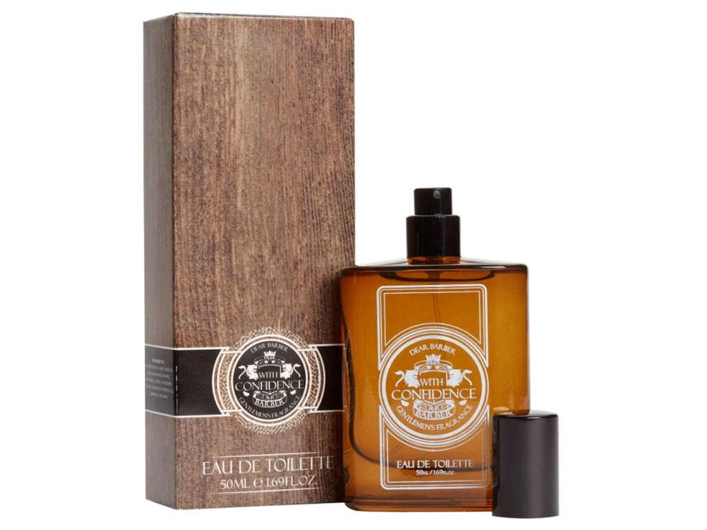 Panská toaletná voda DEAR BARBER With Confidence má nezabudnuteľnú vôňu bergamotu, pižma, vanilky a jantáru. Osviežujúca, korenistá vôňa pre pánov. Balená vo fľaštičke s rozprašovačom a v elegantnej papierovej škatuľke.