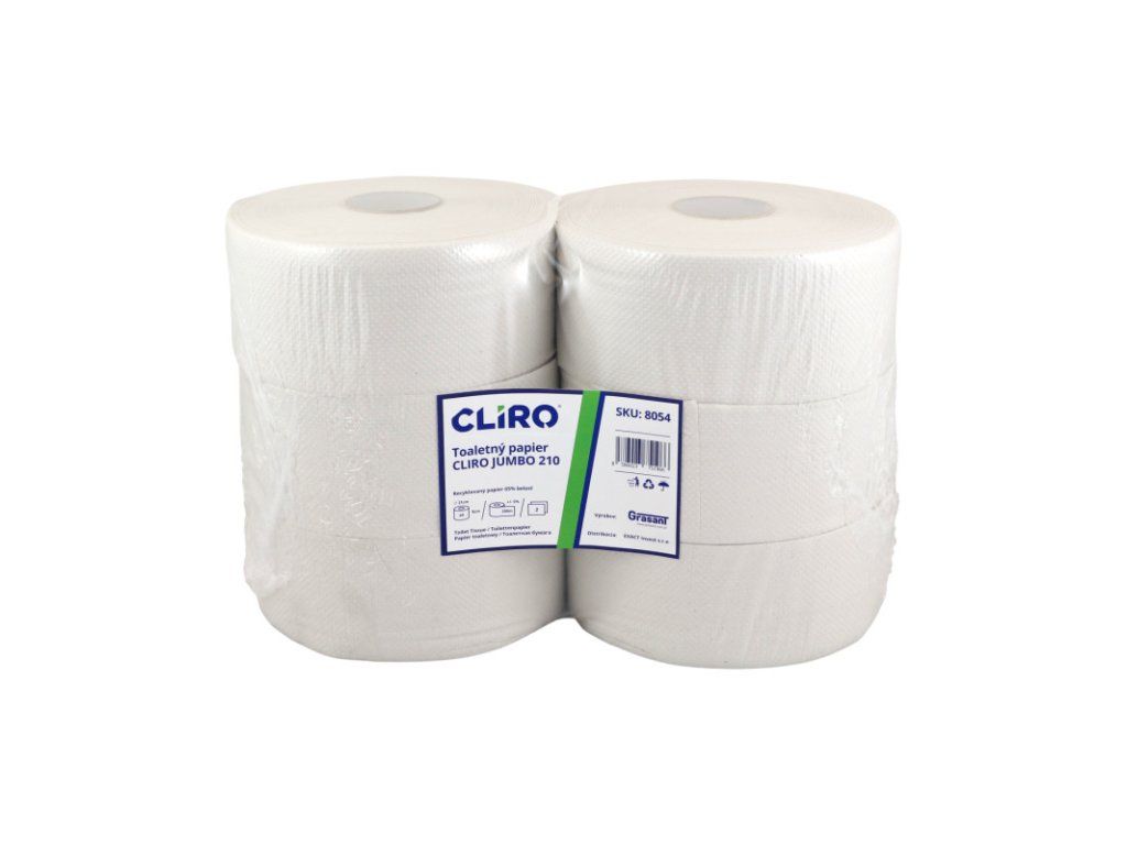 Toaletný papier CLIRO JUMBO Ø 21CM 2vrst.200m recykel -6ks Toaletný papier recyklovaný Ø 21 cm, 2 vrstvový, 65% belosť, 200 m, Cena za balenie 6 ksDodatočné parametre