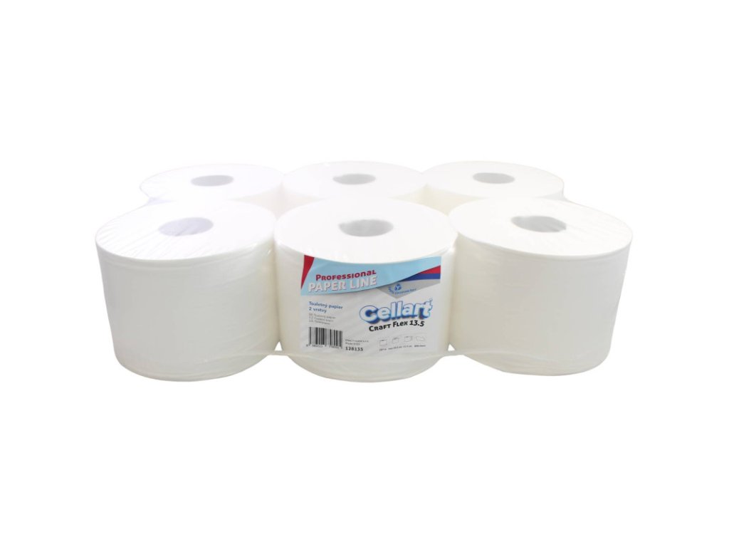 128135 – Toaletný papier JUMBO Ø 19cm – CELLART Craft Soft Flex, 207m (6ks) Toaletný papier Soft Flex je veľmi kvalitný a extra jemný. Toaletný papier je vyrobený zo 100 % celulózy, na dotyk veľmi príjemný. Je kompatibilný s TORK 472 242 Počet vrstiev : dvojvrstvový Materiál : 100% celulóza Dĺžka kotúča (m) : 207  Šírka kotúča (mm) : 134 Šírka dutinky (mm) : 60      Priemer kotúča max (mm) : 190 Balenie  : 6 ks