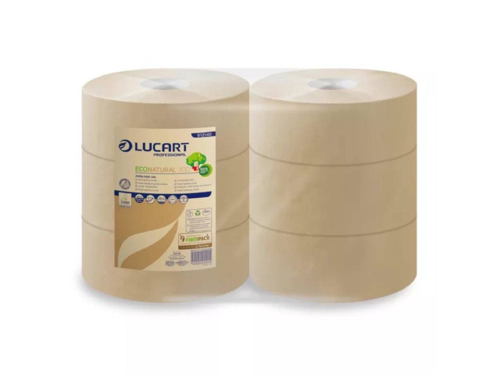 Toaletný papier Jumbo LUCART ECO NATURAL 300m – 6ks Ekologický toaletný papier vyrobený z celulózy získanej recykláciou TetraPack obalov - Fiberpack®, EcoNatural - inovatívny systém, ktorý dáva nový život nápojovým kartónom Počet vrstiev: 2-vrstvový Farba: prírodná Počet útržkov: 811 ks Rozmery útržka: 9,8x37cm Dlžka kotúča: 300m Priemer kotúča: 245mm Počet v balení: 6ks Cena je za bal./ 6ksDodatočné parametre