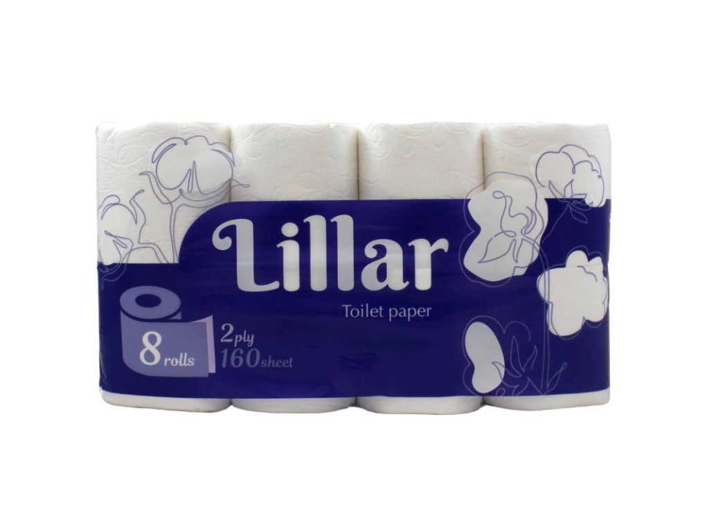 Toaletný papier Lillar 100% celulóza, 2 vrst., 8ks 160 útržkov Cena je za 1 bal./8ks