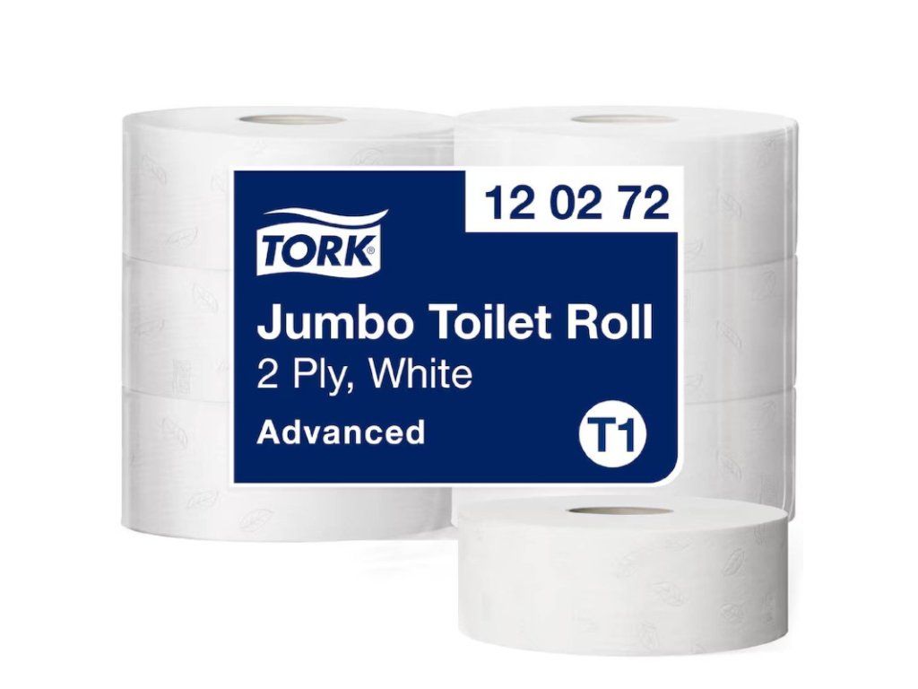 Tork Jumbo toalet.papier T1 360m Ø 26 2vr. (6 ks) Tork Jumbo systém je časovo efektívny a znižuje náklady, ponúka oveľa väčšie množstvo toaletného papiera ako štandardný kotúč. Tork Jumbo toaletný papier v kotúči Advanced dvojvrstvový výborne vyvažuje náklady a množstvo je ideálny pre vysoko frekventované prostredia. Vysoká kapacita: menej údržby a znížené riziko, že sa utierky minú Atraktívny motív: navrhnutý, aby zapôsobil T1 – Zásobník na toaletný papier Jumbo Dĺžka kotúča 360 m Šírka kotúča 9,4 cm Priemer kotúča 26 cm Počet útržkov 1800 ks Dĺžka útržku 20 cm 2 vrstvy Biela farba Recyklát Cena je za bal./ 6ksDodatočné parametre