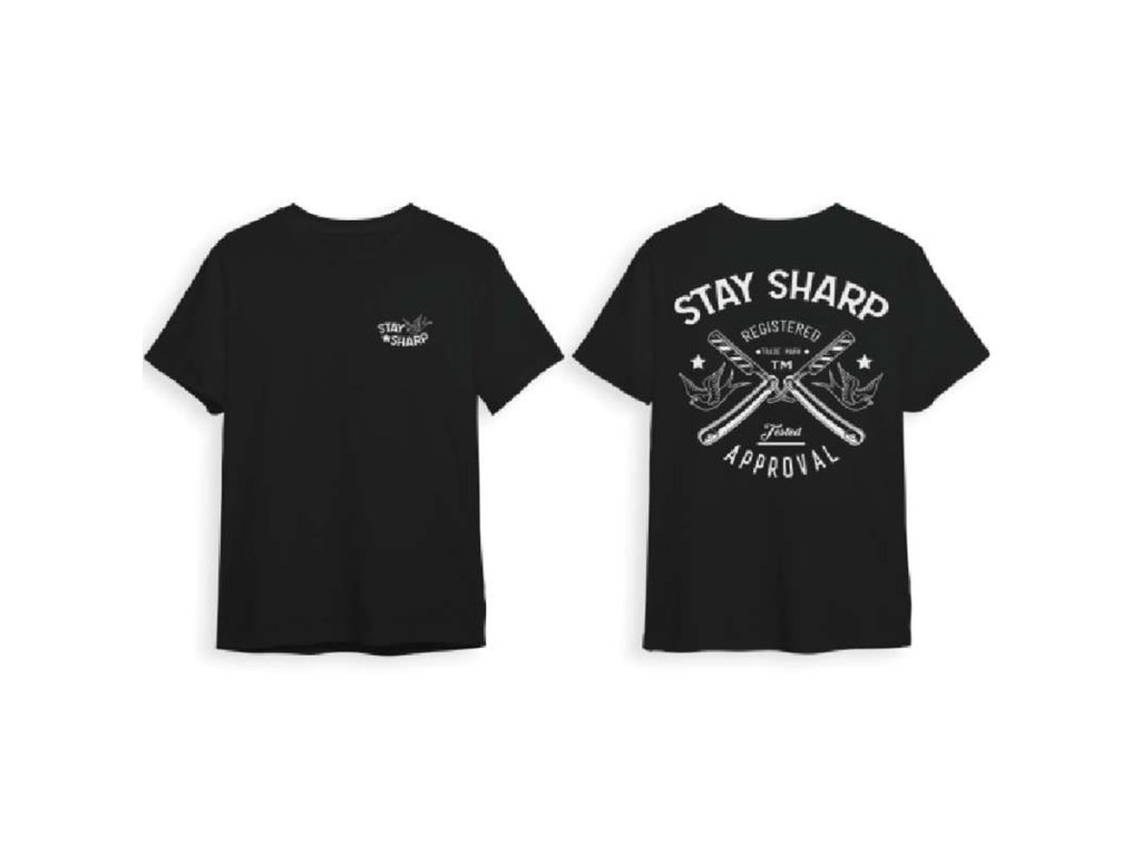 Kvalitné tričko MARMARA BARBER pre barberov a holičov so štýlovým dizajnom "Stay sharp".