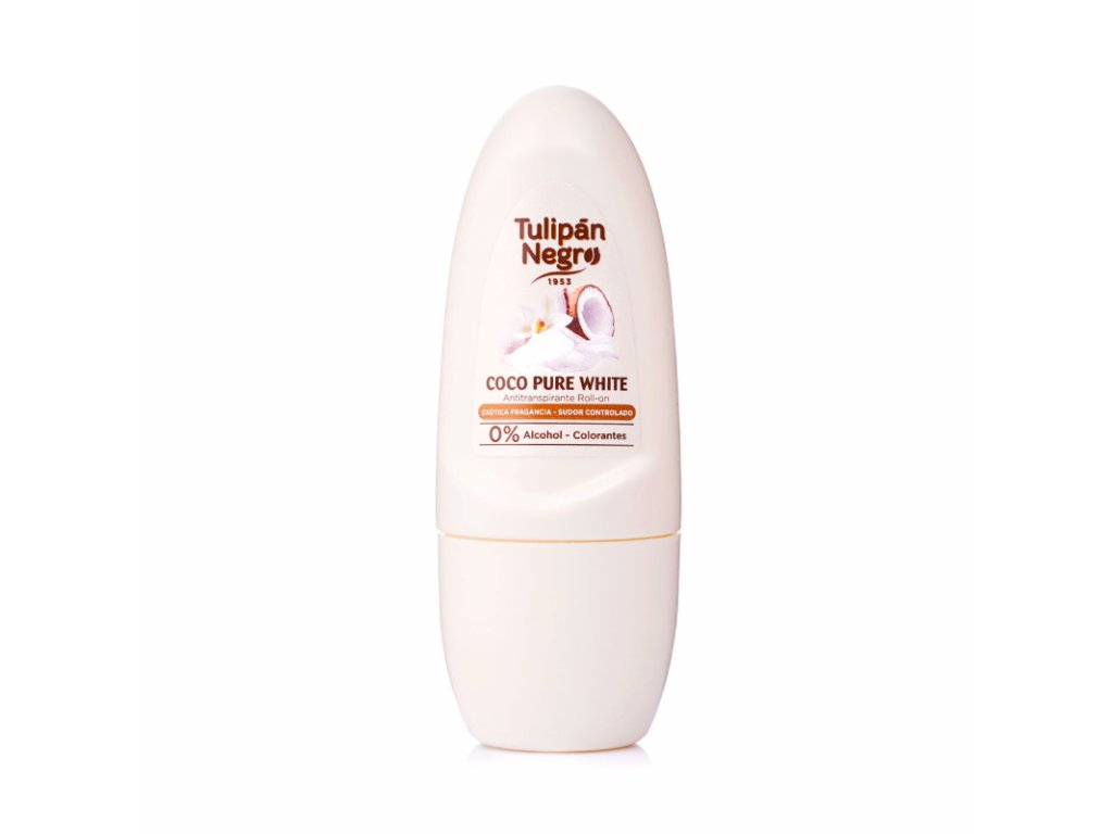 Tulipán Negro Deo Roll On Coco Pure White 50ml extra intenzívna exotická a osviežujca vôňa Roll-on dezodorant-antiperspirant pre hydratáciu pokožky a zanechanie pocitu dlhotrvajúcej sviežosti počas celého dňa.. bez alkoholu a farbív. prre všetky typy pleti. Cena je za 1sk/50ml