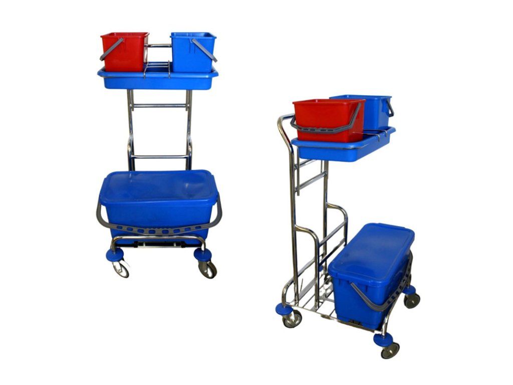 Upratovací vozík chrom. konštrukcia Kombi mini s príslušenstvom 1ks Kovový pochromovaný upratovací vozík s predĺženým podvozkom, s nadstavbou a s kolieskami pr. 100mm Príslušenstvo: 1x veľké vedro 45 cm 1x veko k vedru 45cm 2x vedro 6l 1x vanička 1x držiak na vrece /držiak na vaničku – držiak slúži na vrece alebo ako držiak na vaničku 1x držiak na fľaše do vaničky Rozmer vozíka: dĺžka 57cm, šírka 57cm, výška 112cm Cena je za 1ksDodatočné parametre