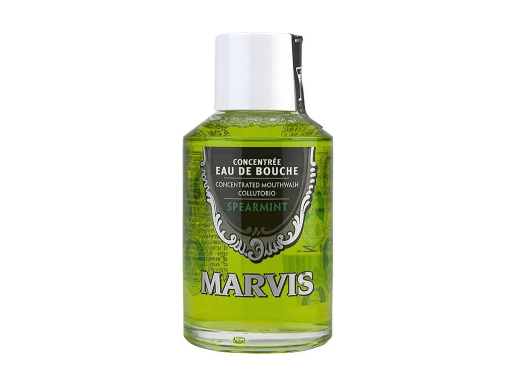 Premiová koncentrovaná ústna voda MARVIS so sviežou mätovou príchuťou sa rozptýli v ústach a pomáha odstraňovať baktérie spôsobujúce zubný kaz. Je šetrná k zubom a ústnej dutine, neobsahuje alkohol a dlhodobo osvieži váš dych.